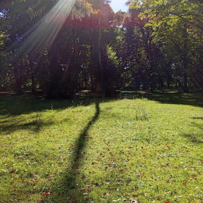 1. Ich liebe die Schatten im Herbst. Besonders die Langen. Die Sonne steht tief am Nachmittag. Das Licht ist strahlend, direkt und dennoch weich. Die Umrisse sind verzerrt, die Konturen viel verwischter und viel weicher gezeichnet. Ein besonderer Zauber liegt über diesem Szenario. Meine Fantasie geht mit mir durch. Da ist was Mystisches dran. Ich sehe Formen, die wie ein Gespenst aussehen. Oder wie ein Schmetterling, der sich vom Wind tragen lässt. Oder im Sonnenlicht tanzende Blätter, die mich selbst anregen, wieder mehr zu tanzen, in einer zarten Bewegung, einem zarten sich Annähern. Es fühlt sich an, als würden sie eine Möglichkeit ausloten, versuchen, testen, tun. Oder doch nicht? Das Mystische kommt mir entgegen in den Düften: feucht, aber noch warm vom Sommer, schon in Umsetzung begriffen, rieche ich den beginnenden Moder des Laubes und sehe viele Blätter an den immer noch grünen Bäumen. Die Farben sind bunt und fröhlich und kündigen den Übergang und ihren eigenen Untergang an.
