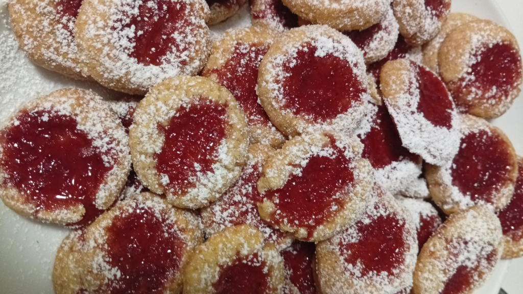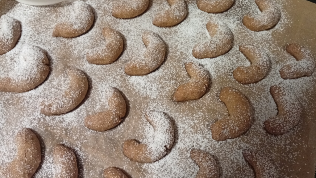 • Nach vielen Jahren habe ich mal wieder gebacken. Ich war echt ungeübt. Dazu sollten es zuckerfreie und glutenfreie Plätzchen sein. Sie sind gelungen. Das Aussehen ist verbesserungswürdig, aber der Geschmack war super: Vanillekipferl und Engelsaugen